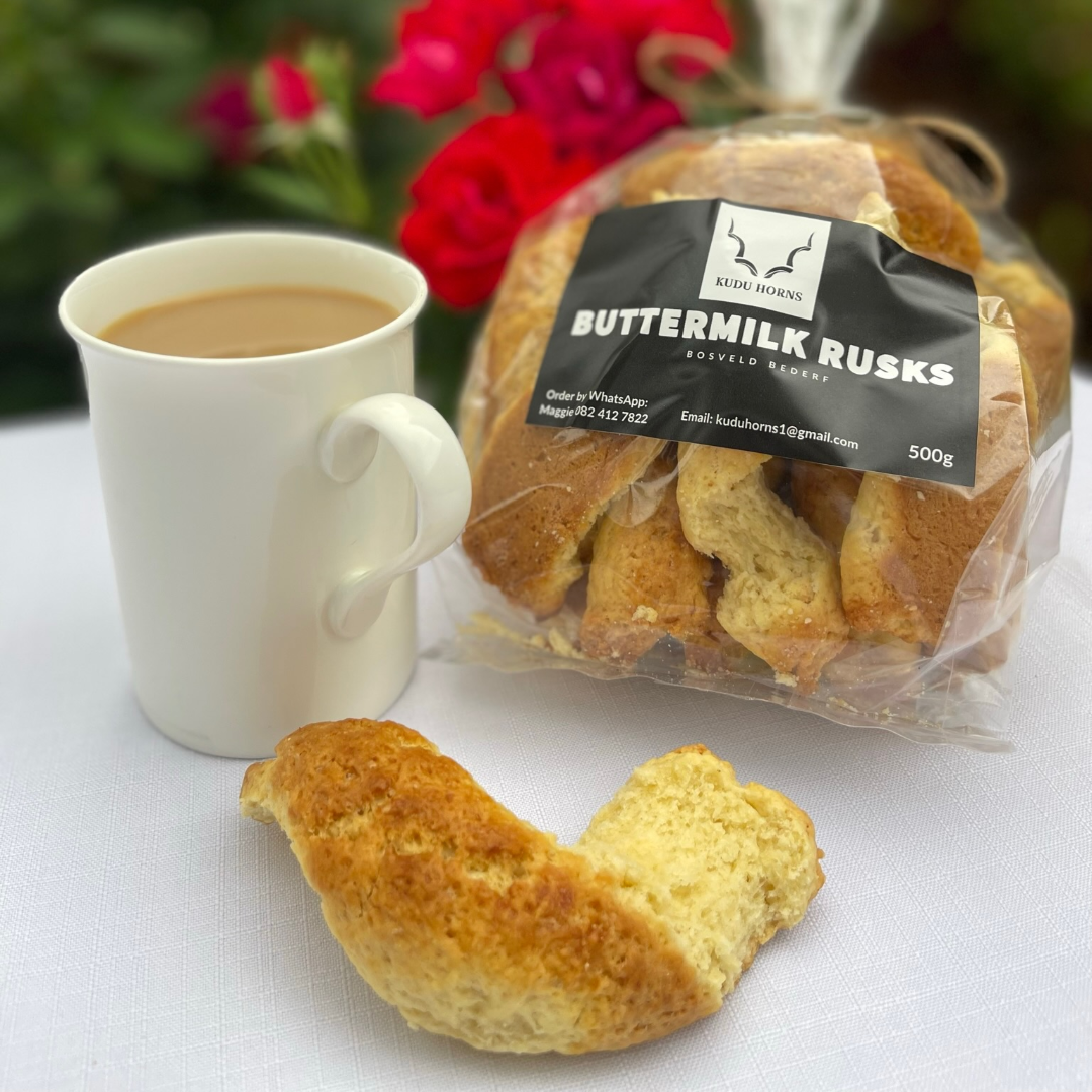 Uniquely shaped buttermilk rusks reminiscent of the trophy of Kudu bulls! Enjoy a sweet treat before your hunt in the bush, your victorious day at the office or the start to a lazy Saturday morning.